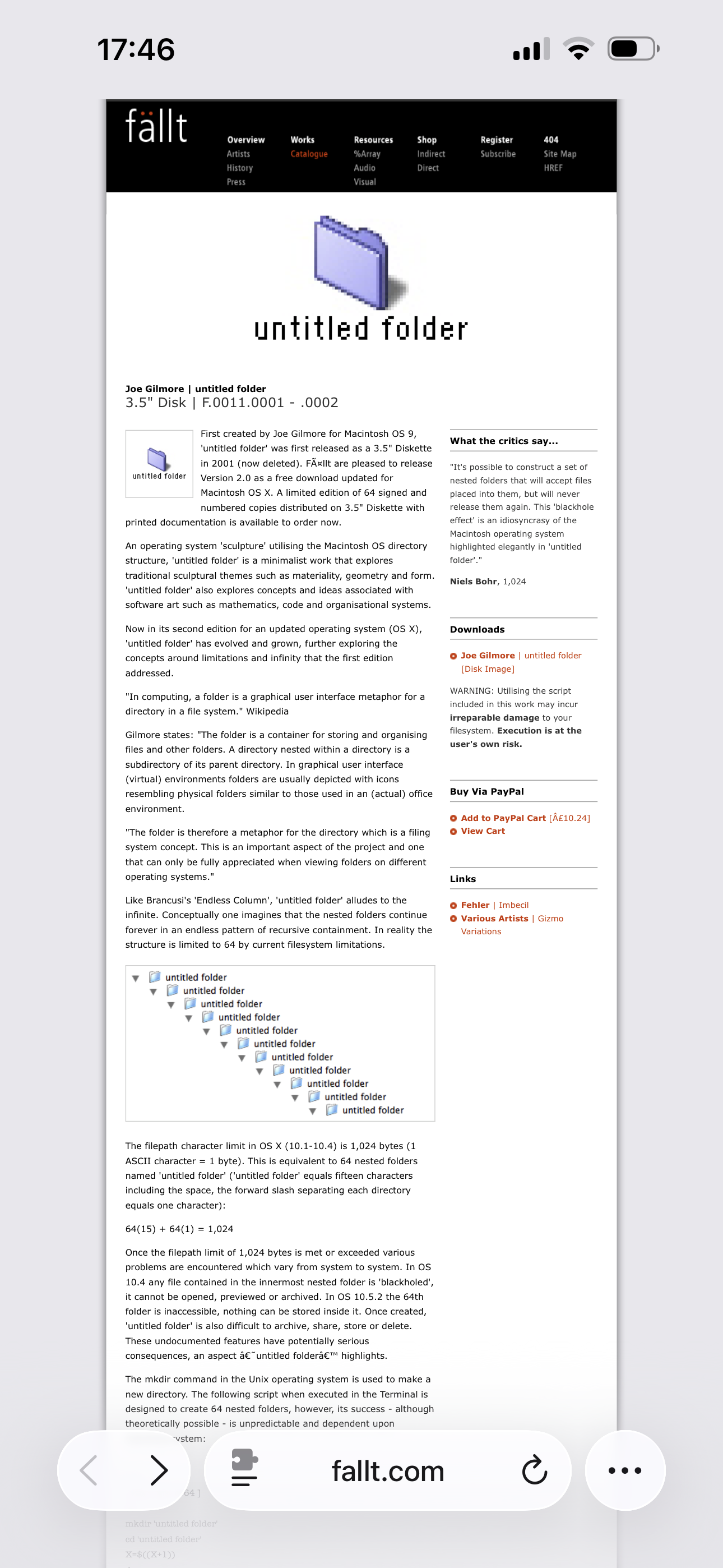 Related: ‘untitled folder’ – and ‘Imbecil’, which explores similar, parallel themes (in particular: the infinite, and ‘computer sculpture’) – remain two of my favourite Fällt projects to this day. [1]